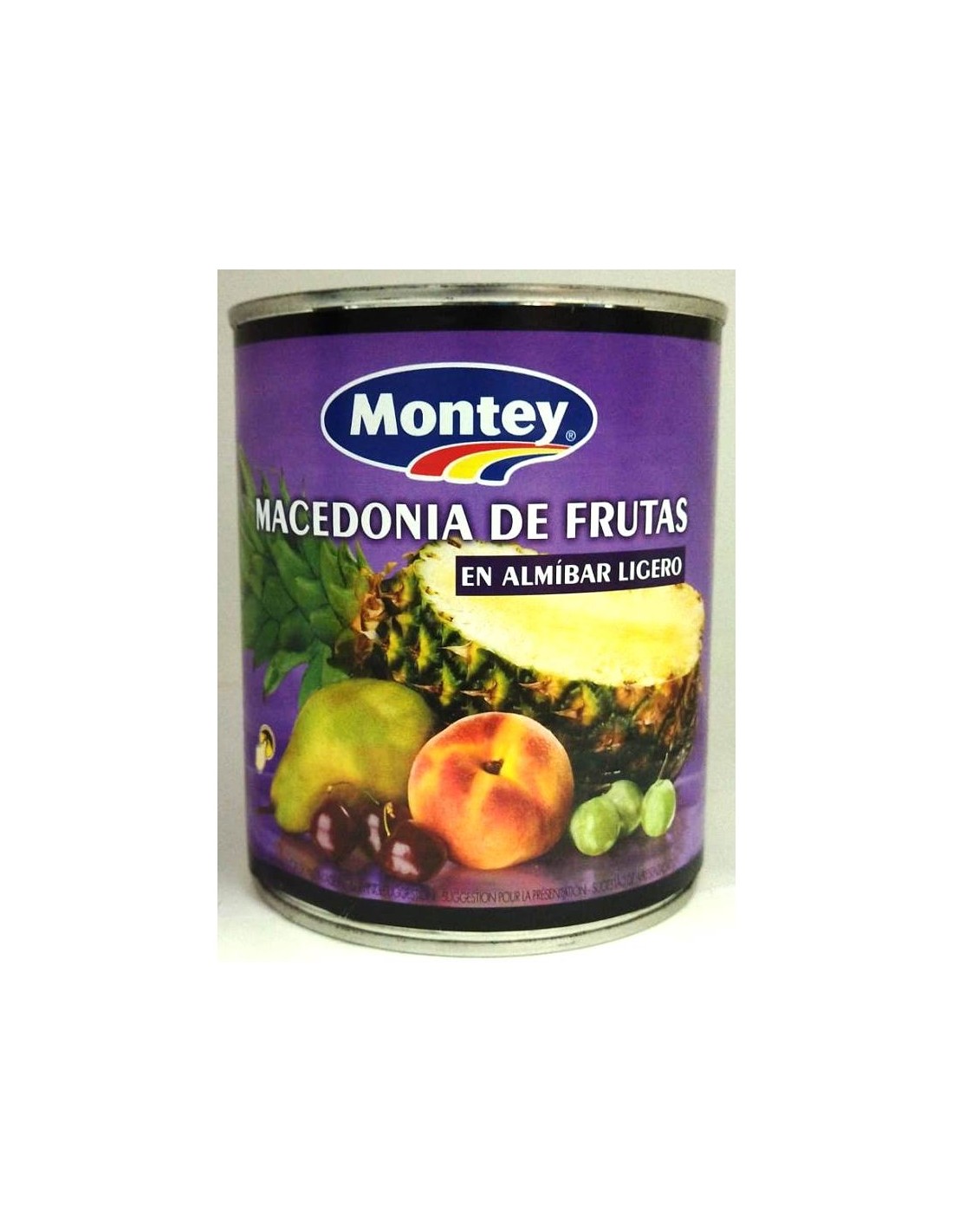 La macedonia de fruta en almíbar Montey es un producto que contiene trozos de frutas variadas en almíbar ligero. Se presenta en 480 grs .